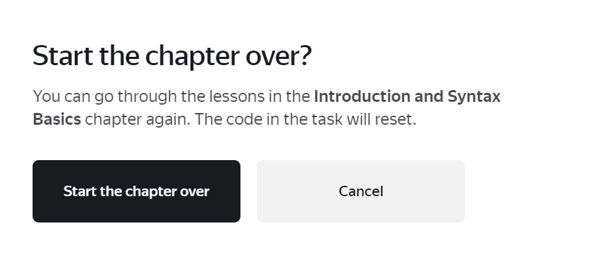 Start the chapter over. - Your progress will be reset, and you can start the chapter over.