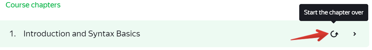 - If you finish a chapter in the paid program and want to start it over right away, you’ll need to refresh the page so that the circular start-over arrow appears in the sidebar.