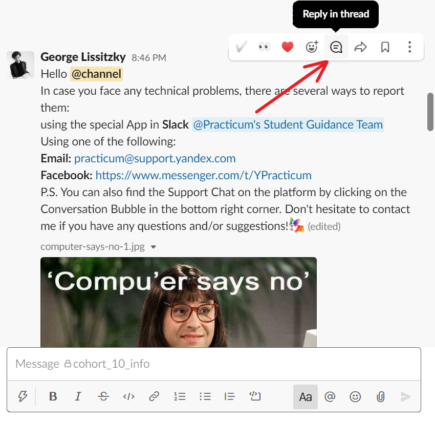 Threads are what makes Slack different from other messengers. If you want to ask something, add a comment or leave your feedback, click “reply in thread”, don’t create a new thread. That will help us keep our channels clean, organized, and easy to navigate.